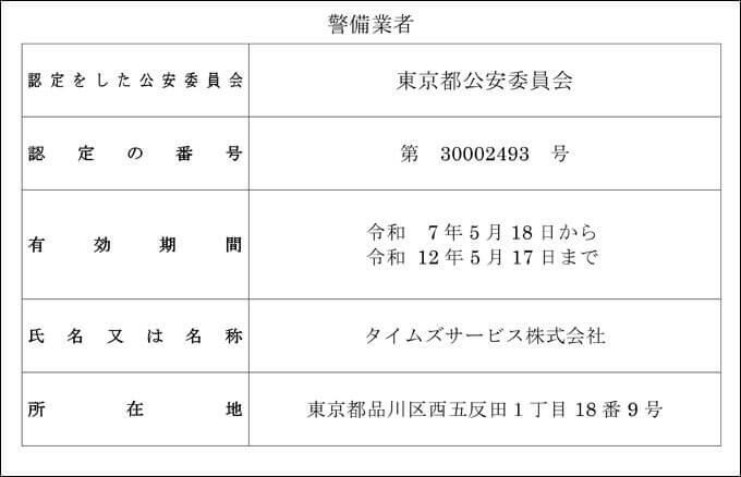 令和6年4月1日から施行された警備業法第6条(認定証の掲示義務)改正に伴い、下記の通り掲示いたします。