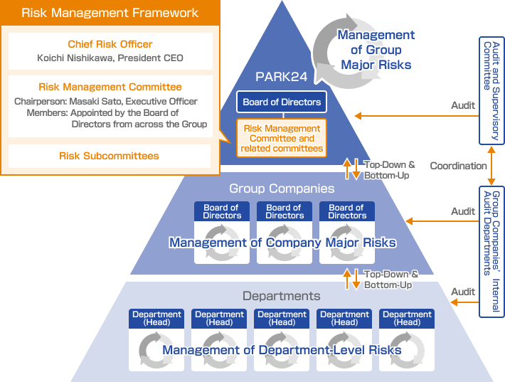 PARK24 GROUP defines risk as “uncertainty that may affect the achievement of our goal of sustainable growth and the enhancement of medium- to long‑term corporate value.” Based on this definition, we effectively engage in risk‑taking, which involves accepting factors that may promote the achievement of our objectives, and risk‑hedging, which involves addressing factors that may hinder them. In addition, through continuous monitoring and review of these activities, we implement comprehensive Enterprise Risk Management (ERM) across the entire Group.