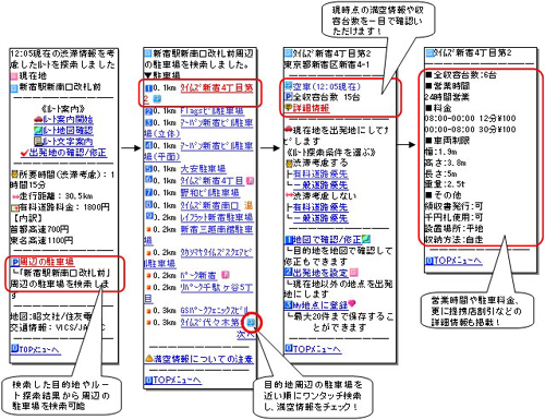 「EZ助手席ナビ」は携帯電話のGPS機能を利用したナビゲーションサービスで、検索した目的地周辺の駐車場まで、カーナビと同じ感覚で利用することができます。今回、満空車情報の配信が始まることによって、検索結果画面の『タイムズ』は「満(満車)」「混(混雑)」「空(空車)」の3段階で表示されるようになります。これにより目的地でスムーズに駐車できるだけでなく、空いている駐車場を探すクルマで渋滞してしまう、いわゆる「うろつき渋滞」を減らすことにもつながります。