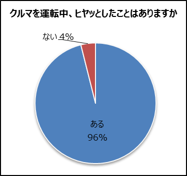クルマを運転中にヒヤッとした経験がある人が96%に上ることがわかりました。