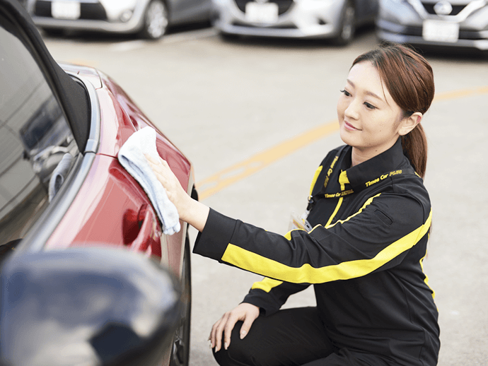 モビリティ車両の洗車は、独自の洗車マニュアルに基づいて効率的に短時間で実施しています。また、水の利用を最小限に抑えるなど、環境にも配慮しています。